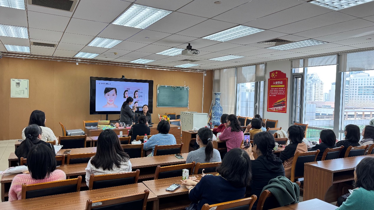 3月6日中午,为庆祝第114个“三八”国际劳动妇女节,学院工会精心策划,学院领导大力支持,王少萍书记亲自参与的“职场美妆课堂”在新主楼E706会议室温馨开启。活动特邀中央电视台资深化妆师吕行老师担任主讲嘉宾,通过专业美妆知识分享与互动体验,为学院女性教职工带来一场兼具实用性与艺术性的美丽盛宴,吸引了女性教职工的热情参与。