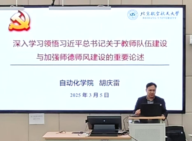 在学院路校区主201教室举办“深入学习领悟习近平总书记关于教师队伍建设与加强师德师风建设的重要论述”专题党课,此次党课由学院院长、党委副书记胡庆雷主讲。学院全体教职工参加了本次专题党课学习。