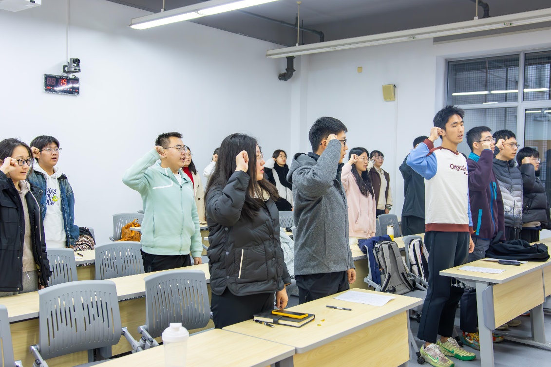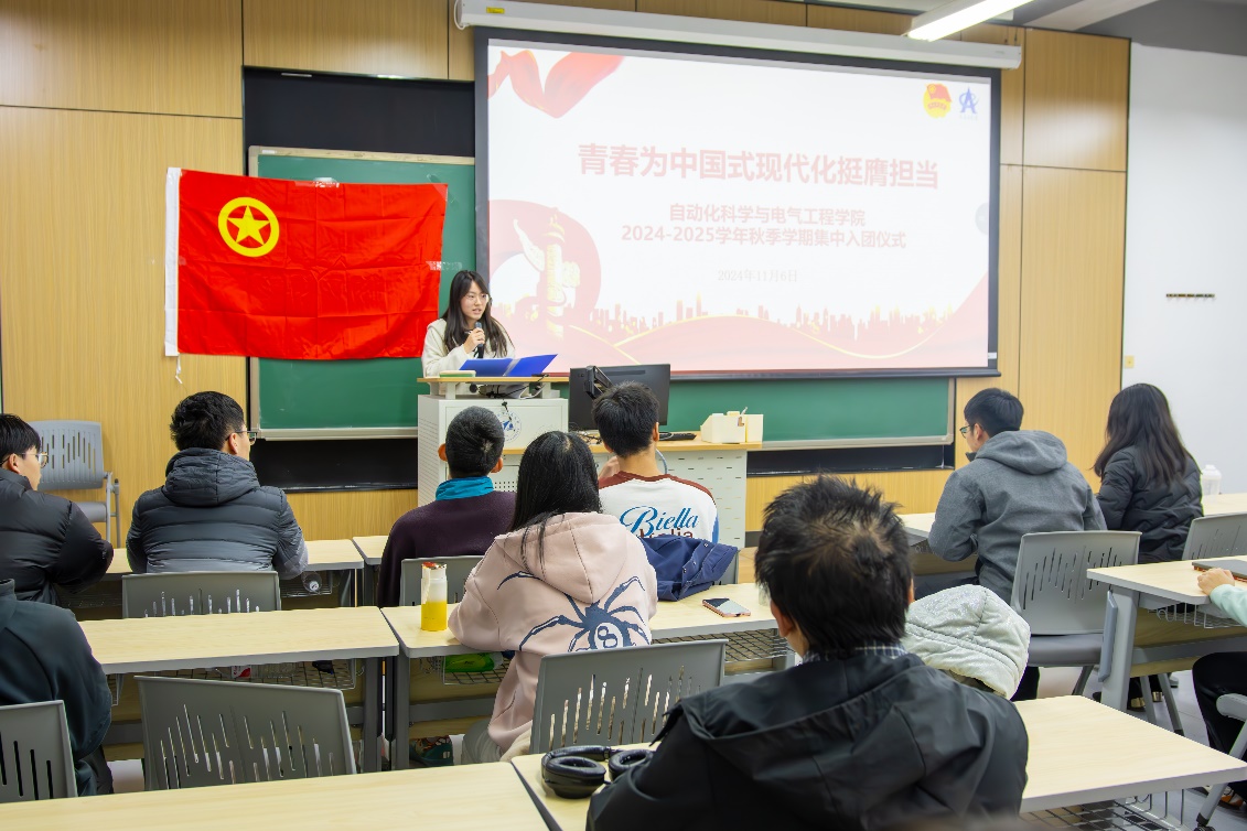 在新主楼D215举办“青春为中国式现代化挺膺担当”2024-2025学年秋季学期集中入团仪式。学院团委书记乔娇,兼职辅导员、思政教育中心指导教师吕子良,学院团委、各团支部新老团员代表30余人参加。仪式由江津同学主持。