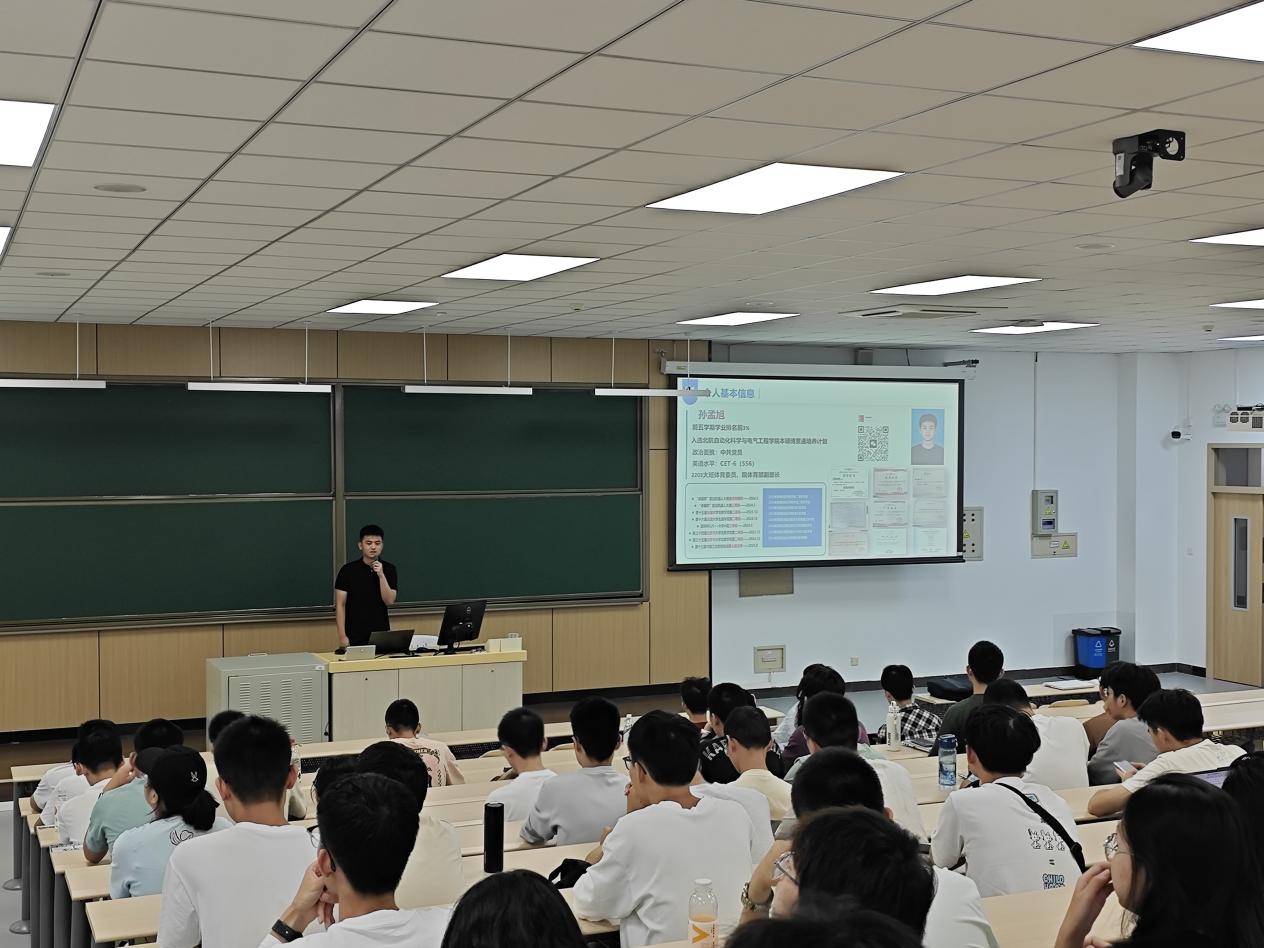 孙孟旭学长则聚焦课程学习与竞赛科研展开分享。科创竞赛方面,孙学长以他参加“卓翼杯”的经验为例,讨论竞赛在综测加分之余对于个人能力的培养与提升。在进组科研方面,他结合自身经验给出实用建议:主动通过学院平台了解导师研究方向,大胆沟通争取进组机会,在参与科研项目的过程中逐步培养科学思维、探索学科兴趣点。同时,作为院体育部副部长,他热情号召同学们走出教室,在体育竞技中感受团队协作的力量,展现青春活力;而作为一名中共党员,他也以身作则,积极投身社会实践,用实际行动践行 “把论文写在祖国大地上” 的初心,为同学们树立了全面发展的榜样。