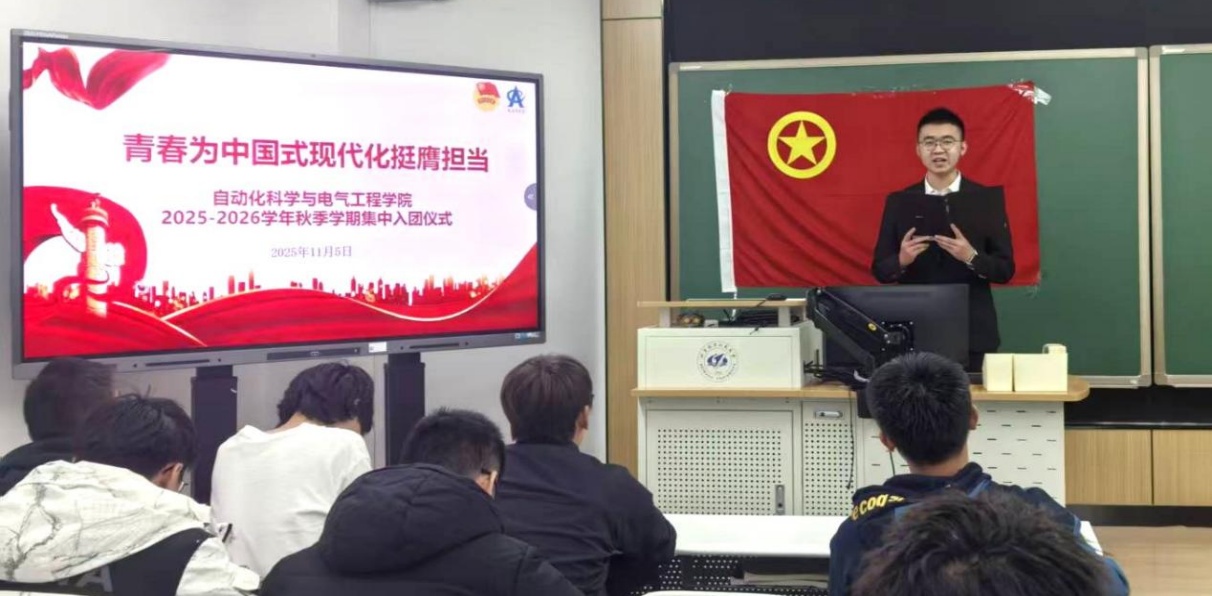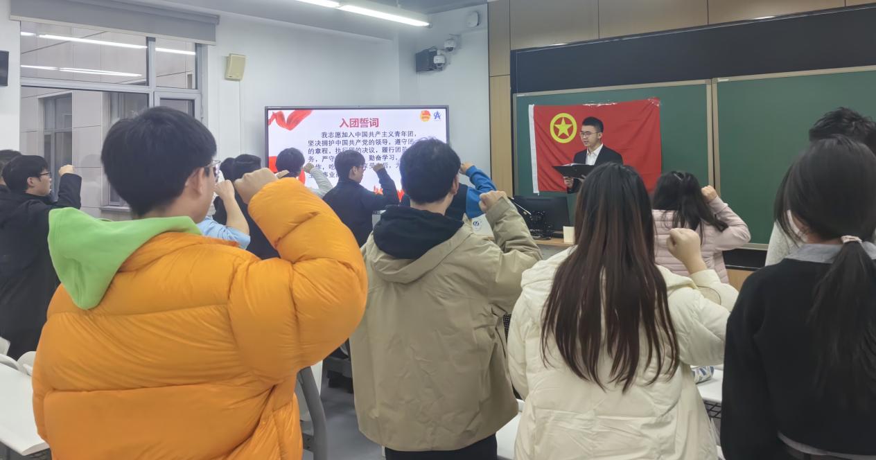 在新主楼F203举办“青春为中国式现代化挺膺担当”2025-2026学年秋季学期集中入团仪式。学院团委书记乔娇,团委副书记吕子良,学院团委组织部、各团支部、新老团员代表20余人参加。仪式由李梓源同学主持。